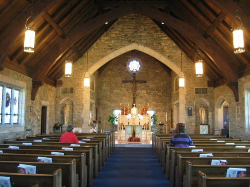 I went first to the Shrine of St. Rose Philippine Duchesne in Mound City. This Church was built in 1941, the year that Rose Philippine Duchesne was Beatified. It has some simple stained glass windows that depict various moments in her life. She joined the convent in France when she was 17, but then had to leave the country because of the French Revolution. Upon coming to the United States, she settled near St. Louis in St. Charles, MO. She spend most of her life there, but all her life she always wanted to be a missionary to work with the Native Americans. At the age of 71 she got her wish and came to the Sugar Creek Indian Reservation in Kansas to work with the Jesuits at St. Mary’s Mission.