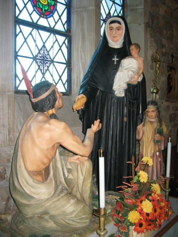 I went first to the Shrine of St. Rose Philippine Duchesne in Mound City. This Church was built in 1941, the year that Rose Philippine Duchesne was Beatified. It has some simple stained glass windows that depict various moments in her life. She joined the convent in France when she was 17, but then had to leave the country because of the French Revolution. Upon coming to the United States, she settled near St. Louis in St. Charles, MO. She spend most of her life there, but all her life she always wanted to be a missionary to work with the Native Americans. At the age of 71 she got her wish and came to the Sugar Creek Indian Reservation in Kansas to work with the Jesuits at St. Mary’s Mission.