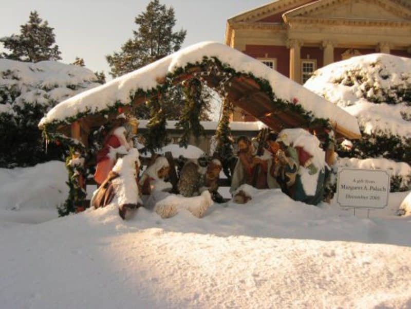 This is our manger scene in front of the main chapel. Notice that the poor little cow in front of St. Joseph has been almost completely buried. I thought about digging him out, but the drift in front is pretty big and I didn’t want to get lost.
