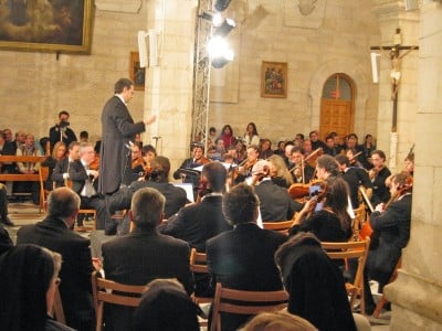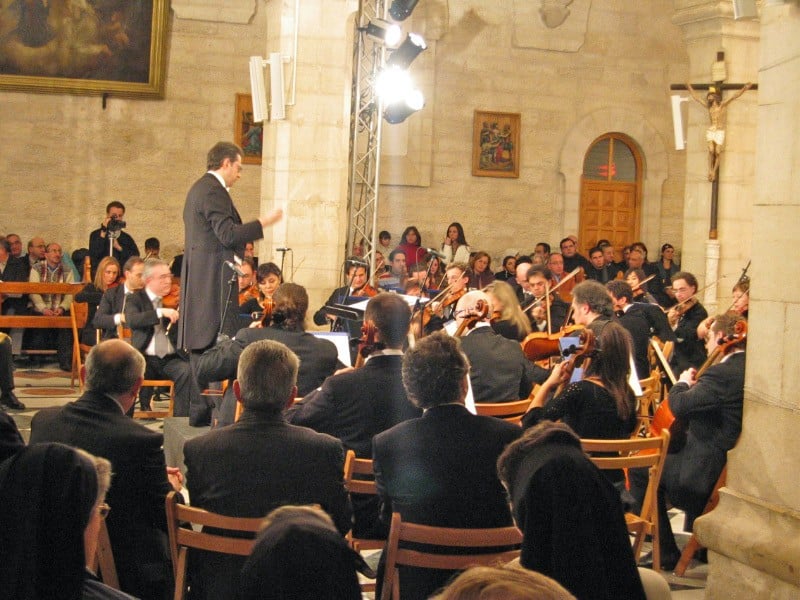 Later tonight I went to an orchestra concert at St. Catherine’s. This was entitled a concert for Life and Peace that was televised all over the world and is apparently a pretty big deal. It was a very nice concert and the church was packed. It wasn’t Christmas music, but if was very nice. Manger square is starting to look like Christmas with lights everywhere. There still don’t seem to be many tourists thought. One bit of good news (for the locals anyway) was that it finally started raining today. That will be a nice Christmas present for a desert.