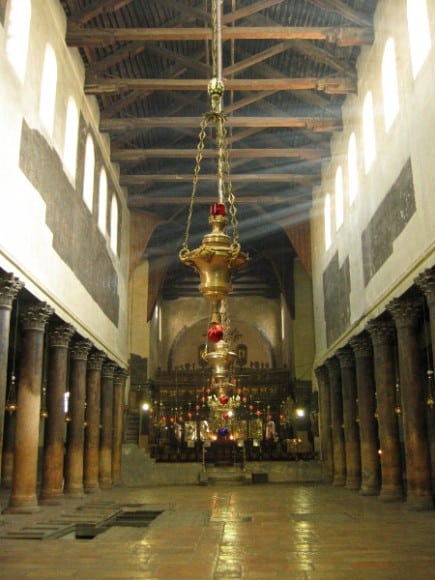 Once inside, the church itself is not particularly impressive. The architecture is quite a mix of things and it is, for the most part, unornamented. There are openings in the floors that reveal the original mosaic floor from the 4th century. The main altar is used primary by the Greek Orthodox. It and the iconostasis were a gift from Russia. There are also remnants of a few mosaics on the walls. The church has seen many changes over the years, but remains very old by any standard.