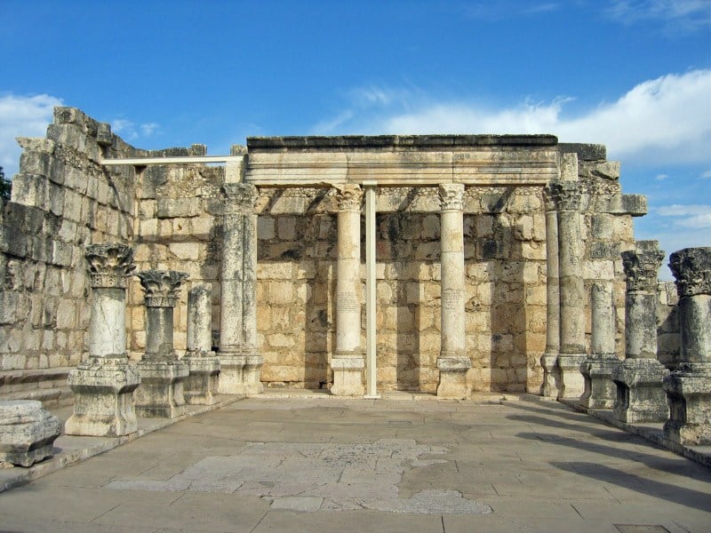 After Mass we toured the ruins of the city. The most famous site is the synagogue. The ruins visible today are from the 4th century, but this synagogue is built rite on top of the original 1st century synagogue. The foundations of this original building are still visible. I have been looking forward to visiting Capernaum for such a long time. It was here in this very synagogue where Jesus gave his famous Bread of Life discourse and taught about the Eucharist (John 6:59). This synagogue is also special because we have an account of the man who built it. When the slave of a Roman centurion from Capernaum is sick he sends the apostles to Jesus who tell him, “He is worthy to have you do this for him, for he loves our nation, and he built us our synagogue” (Luke 7:5-6). With many of these biblical sites you can’t really be sure you’re at the place where the event took place. However, I knew today that I was definitely standing in the location of the 1st century synagogue of Capernaum and I could imagine Jesus teaching here. I wanted to stay here all day and meditate, but had hardly any time at all before we had to move on. I will have to return here many times in my memory in the future.