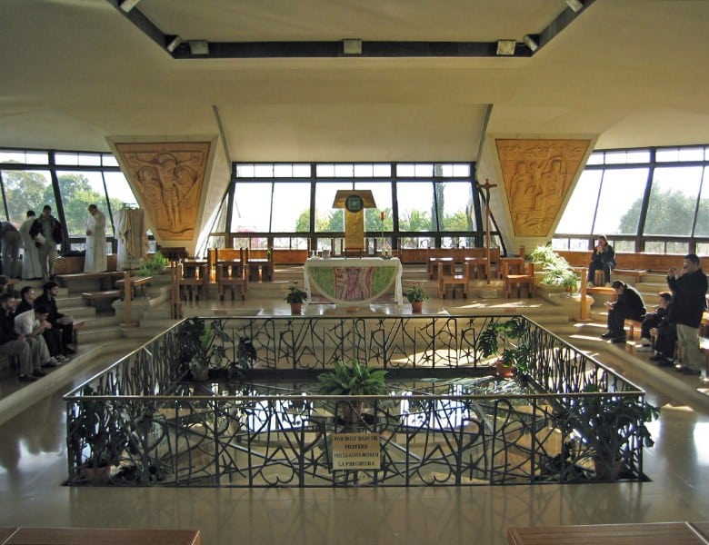 Today was a very exciting day. We began with a visit to one of my favorite biblical towns, the city of Capernaum. If there was any place that you could say that Jesus had as a home during his public ministry, this is it. This was also the home of St. Peter. The modern church that stands at the site today is built above the 1st century ruins of St. Peter’s house. There is a glass floor in the bottom of the church so you can look down and see the ruins. A church has stood in this location since the 4th century and these ruins are also visible. As we celebrated Mass here in this church I thought of the ruins below me and all the people who had celebrated Mass here over the centuries. I thought of the early beginnings of the Church at St. Peter’s house. What a special place.