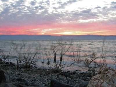 From Capernaum we continued on the north shore of the Sea of Galilee to Tabgha, the traditional site of the multiplication of the loaves and fishes (Luke 9:12-17). Here there is the rock upon which Jesus is said to have placed the loaves and fishes, as well as a famous 4th century mosaic which you see everywhere around Israel. Just a couple hundred yards from this spot is a church dedicated to the primacy of Peter. This is the traditional spot where Jesus appeared to the disciples after his resurrection, standing on the shore. He had cooked breakfast for them. It is here that Jesus asked Peter three times, “Do you love me?” Jesus tells Peter to feed his sheep and places him in charge of his new flock of Christians. The rock in this church is labeled “Mensa Christi” or “Table of Christ” because Jesus and the disciples used this as their breakfast table on that day.