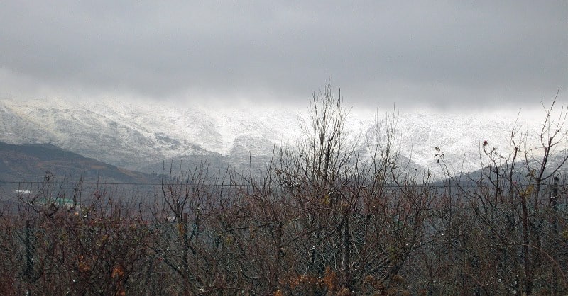 We continued north from Caesarea Philippi to the border of Israel, Lebanon, and Syria. We hoped to catch a glimpse of Mt. Hermon, the highest peak in the Holy Land. Unfortunately, the rain had left us in a big fog. However, as we ate lunch the rain that we had been experiencing actually turned to snow. As we finished eating the clouds began to give way and there before us we saw Mt. Hermon and the Golan Heights beautifully covered in a fresh blanket of snow. As quickly as the mountains had appeared, the clouds again covered them and they were gone. It was also time for us to be gone from this region and so we began our decent back down to the Sea of Galilee. The rain kind of put a damper on things today, but I’m starting to accept the fact that I’m just going to have to file some of this stuff away to meditate on at a later time. We’re seeing so much so quickly that I just don’t have time to process it all. It can be frustrating, but I trust that God has it all under control and maybe some of the best experiences of the Holy Land will come in a chapel somewhere back home at a later time. All in God’s providence.