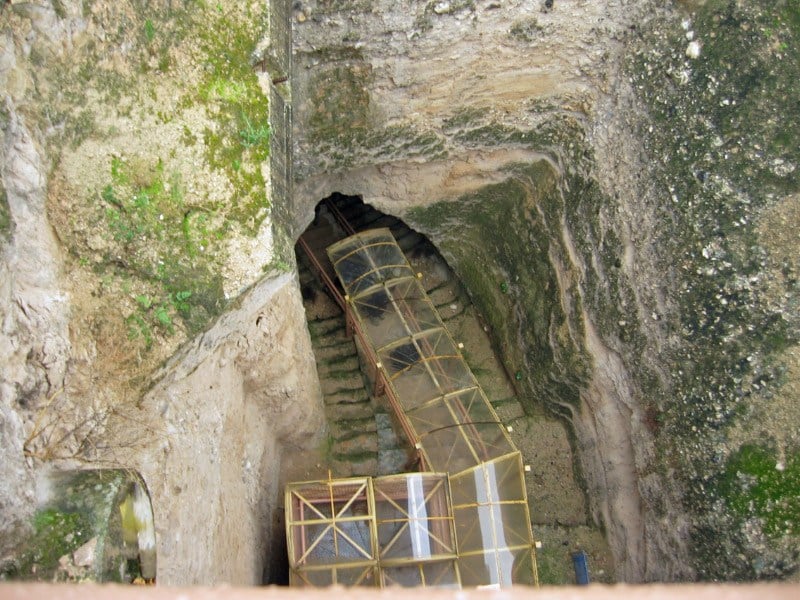 Today was a day I’ve been looking forward to for a long time. Today we went to Caesarea Philippi, the place where Simon became Peter. I’m so excited to tell you it about that I’m tempted to skip the other sites…but I won’t. We actually went to two other places before the big destination (emphasis mine). First, we went to the ancient ruins of Hazor. This city is another very old city. It was built thousands of years before Christ. It’s so old that when Solomon built the gates, there were already ruins of many cities below that he was building on top of. The Bible mentions that fact that Joshua came all the way up here with the Israelites after crossing the Jordan because of the symbolic importance of capturing this city. The most impressive part here was getting to go down into a huge shaft that was dug to get to water. This is similar to what we saw at Megiddo, except this time we got to go down in the tunnel. Basically, the problem was that the spring was located outside the city walls. So, they dug straight down hundreds of feet and then made a horizontal tunnel over to the spring so they could get water without leaving the city. Pretty neat.