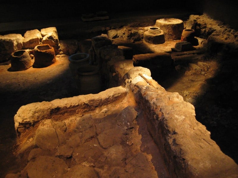 What would be a tour in the Holy Land without seeing some ruins? While in the Jewish quarter we saw the remains of what would have been Main Street Jerusalem in the time of Jesus. All Roman cities had such a street, called a “cardo” (“hinge” in Latin), with columns down both sides and shops. We saw one when we went to Sephoris previously. By far the most interesting thing was a visit to what is known as “The Burnt House”. These are the remains of a Jewish house that was burnt by the Romans when they destroyed the city of Jerusalem in 70 AD. They had a nice light and video show that dramatized the event.