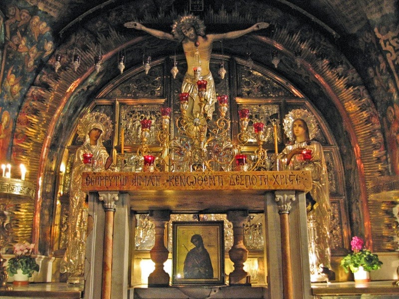 As Catholics, we know that at each Mass, the sacrifice that Christ offered on Calvary is made sacramentally present before us and before God the Father in the Eucharist. This is what we mean when we say the Mass is a sacrifice. The same sacrifice that Jesus offered once for all in history is miraculously made present for us. Jesus is continually offering himself to the Father on our behalf. I always think about this when the priest raises the Eucharist and offers it to God at the end of the Eucharistic prayer. Actually being on Calvary to celebrate the Eucharist was an incredible experience. This is the very location where the sacrifice that we offer at Holy Mass was first offered and completed. The blood of Christ that was shed for us sacramentally at Mass was first shed in this very place on that first Good Friday. This is a powerful place of prayer.