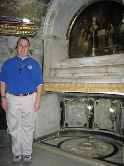 Today was a field trip day. We began by proceeding in haste into the hill country of Judea to the town of Ein Karim. This is the town where Elizabeth and Zachariah lived and where Mary went to greet Elizabeth after the Annunciation. It is here that the second joyful mystery of the Rosary, the Visitation, took place. We were able to visit the Church of the Visitation as well as the Church marking the Birthplace of John the Baptist. The name “Shawn” is the Gaelic form of “John” and I claim John the Baptist as my primary patron saint. So, this was a very special place for me to visit. They have a marker over the place of his birth similar to the one marking the location of the Annunciation in Nazareth. We couldn’t stay long, but I prayed that St. John would continue to help me to be a good prophet and precursor of the Lord and that I may do a good job of preparing His way. “He must increase and I must decrease.”