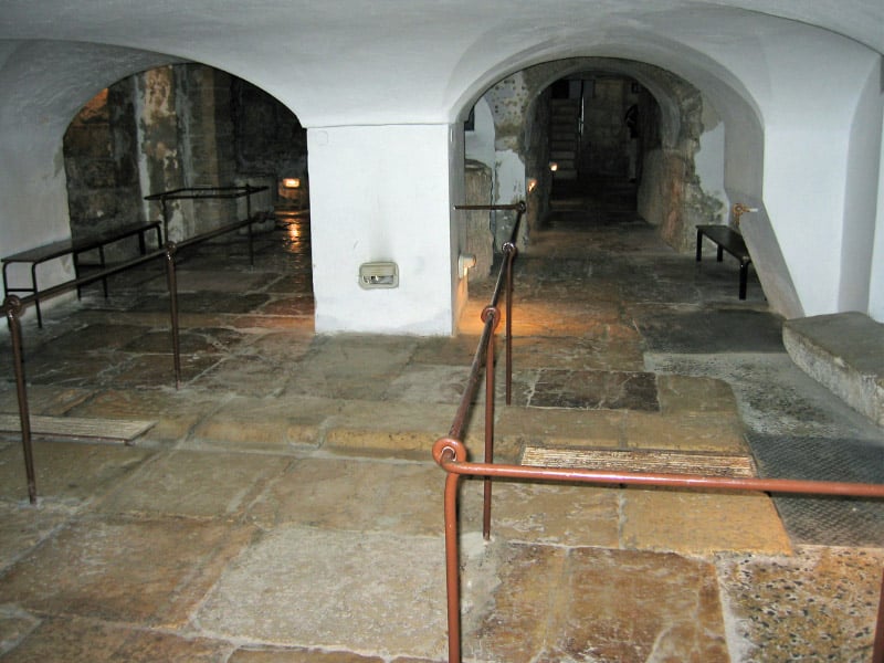 After Mass we went to visit the Convent of the Sisters of Zion on the Via Dolorosa (The Way of the Cross). Their convent is located right near the place where Pilate would have had his judgment seat at the time of Jesus. In the ruins under there building they have found a road and courtyard made of stones from the first century. For many years it was believed that this was the “Stone Pavement” mentioned in the Bible where Jesus was tried before Pilate. Now, it seems that perhaps these stones are actually from the fortress of Pilate that the Romans knocked down in AD 70 and later reused to build a road. Regardless, there are still visible drawings in the stones that were used by the Roman soldiers in playing a game called the “Game of the King”. Here a prisoner would be dressed in a royal robe as a king and then mocked and beaten according to the throwing of dice. Sound familiar? We’re not completely where Pilate would have resided in Jerusalem, but this is the traditional place and it was a great treat to be able to visit it.