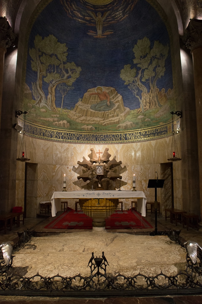 Just when you think things can’t get any better, Mike pulls another amazing special event. After fighting the zoo of pilgrims all day, tonight we had the opportunity to make a Eucharistic holy hour all by ourselves in the Church of All Nations. You may remember that this is the church in the Garden of Gethsemane. There we prayed and kept watch for an hour just as Jesus had asked the apostles to do. Jesus was right there on the altar, back in the Garden, offering himself for us in all his suffering. I felt I could almost see Jesus there on the rock and wanted to comfort him with my prayer.