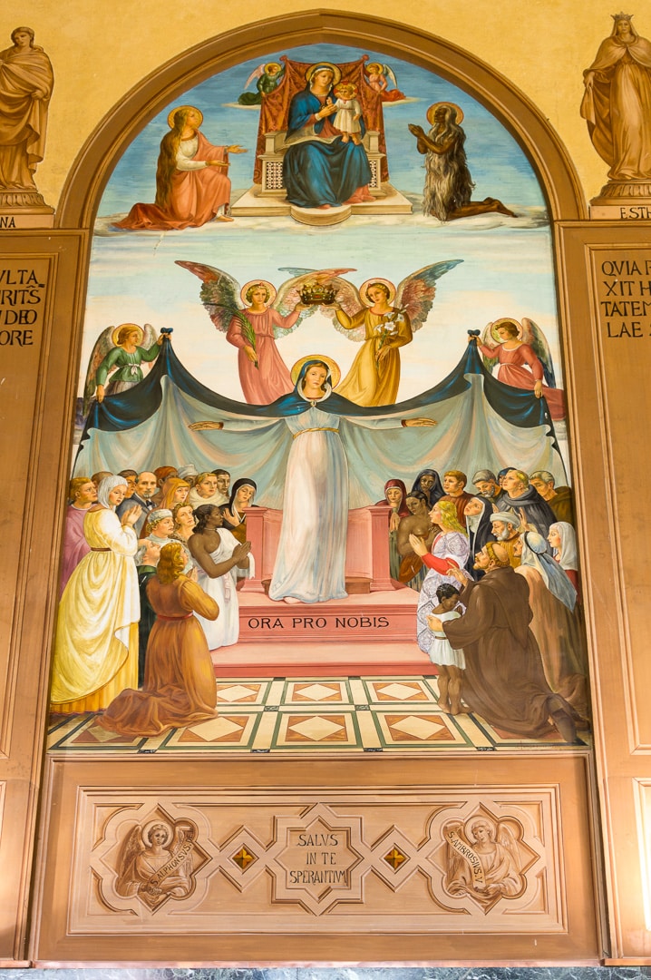 In the upper church here, there are several beautiful mosaics depicting various important Marian moments in Church history. One of my favorites is Mary protecting Christians under her mantle. I realized here that I have sadly let my relationship with Mary grow somewhat cold. With all the trouble in the world and my own life, we were reminded here that praying the Rosary has always brought victory. I really felt the need to place myself more deliberately under the protection of Mary and take more seriously invoking her intercession.