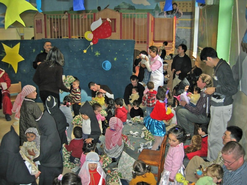 We didn’t speak the same language as far as Arabic goes, but I think we spoke a language that they understood just fine. They were so happy to have people there to play with them and communicate that they are loved. There were many smiles all around and much fun had by all. I think some of us are planning to go back more regularly while we are still here to play with the kids. What a merry Christmas we had today. Now, I’m off to another Christmas concert tonight. I’m not sure when I’ll be able to update this site next. So, I pray that you all have a very Merry Christmas and I will be praying for you especially from ground zero here at the Church of the Nativity.