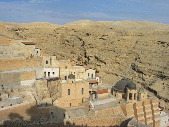 After our regular morning classes today we took our first “field trip”. Our first destination was to a remote monastery founded by Mar Saba (Saint Saba), a Byzantine hermit from what I think was the 7th century. As our bus left the city of Bethlehem, it didn’t take long to see just what a desert this place really is. As we got further and further out in the middle of nowhere I couldn’t help but wonder how anyone could live out here. We eventually arrived at the very simple monastery located basically on the side of a cliff. As much as life in a monastery out in the middle of the desert seemed to be difficult enough to me, our guide told us that the monks actually lived in caves in the side of the cliffs and only came to the monastery once a week. They ate only bread and water and, once, a monk was caught dipping his bread in his water and was immediately punished by the Saintly founder. As I looked at the monastery I assumed we were looking at a historic site that had been preserved for us to look at. However, we then realized that there were still monks living here. It is the oldest continually occupied monastery in the world. About dozen Greek Orthodox monks live there now in much the same conditions as those first monks in the 7th century. It’s a great witness to see how, in this age of technology and constant communication, God still plants a desire in certain people to get away and leave it all to go be at peace and pray. I think there’s a little bit of that in all of us. As we read the Gospel of Luke in class I notice how Jesus even needs to get away by himself and pray. The monastery of Mar Saba and the life of the monks I envision live there does have a sort of appeal to me. The monks don’t live in the caves any more, so we rang their bell, hoping to meet them and see the monastery, but they were busy praying…which seemed rather fitting to me and so I was not too disappointed. An interesting note is that our guide is the same guide the Mundelein pilgrims had 7 years ago when we last had the pilgrimage quarter in the Holy Land. To give you an idea of how remote and desolate this place is, the guide said the last time he had been to Mar Saba was seven years ago with the previous Mundelein pilgrims.