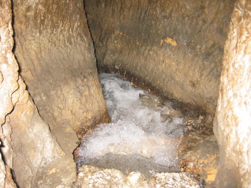 The Gushing Gihon Spring Flowing Into the Tunnel